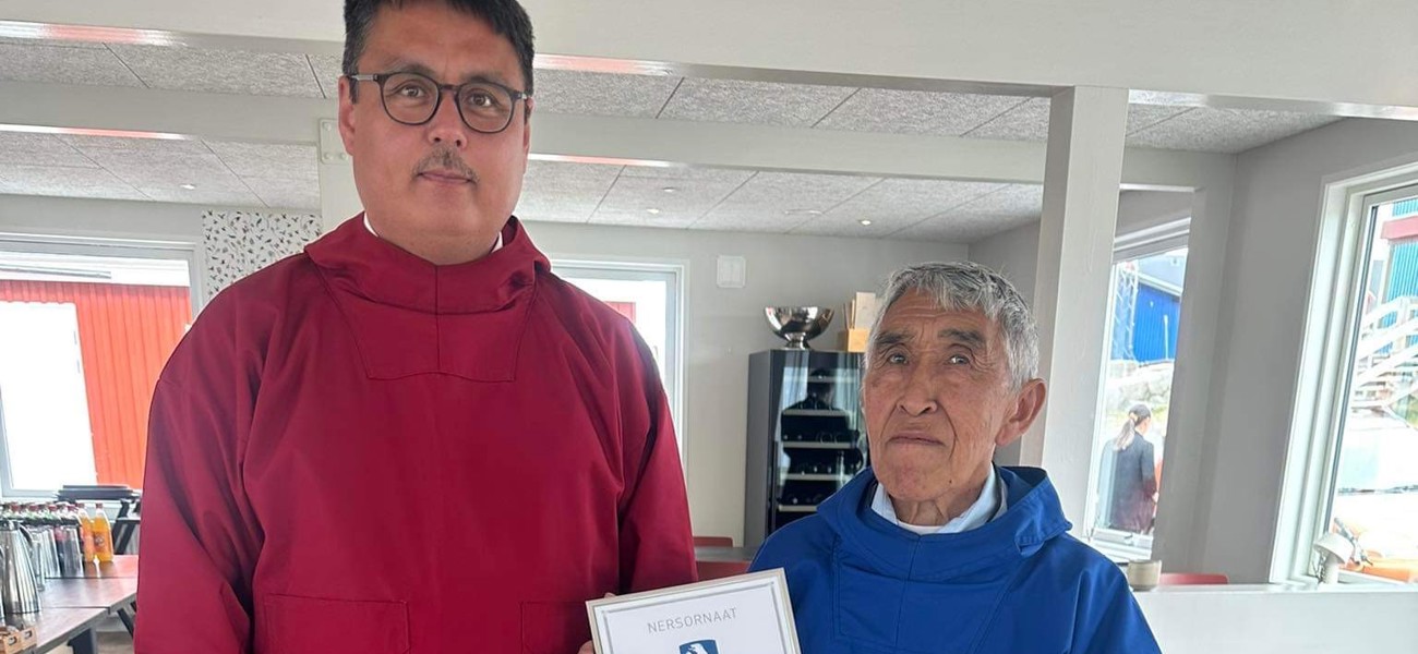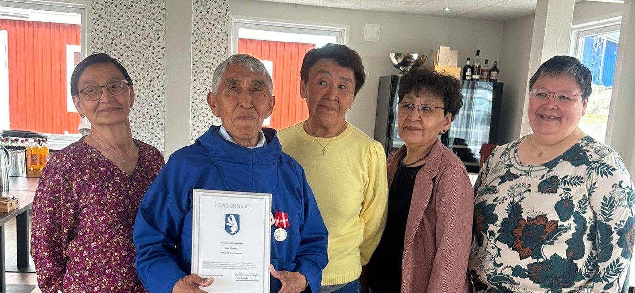 ”Formandskabet for Inatsisartut tildeler dig Nersornaat i sølv, fordi du gennem et langt arbejdsliv har udvist stort politisk engagement i dit lokalsamfund Qeqertarsuaq og har været talerør for arbejdernes levevilkår.