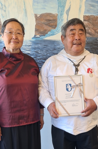 Inatsisartut Siulittaasuata Mimi Karlsenip ulloq 15. juuni 2024-mi Tasiilami James Ignatiussen (Luuddia) sølviusumik Nersornaaserpaa.